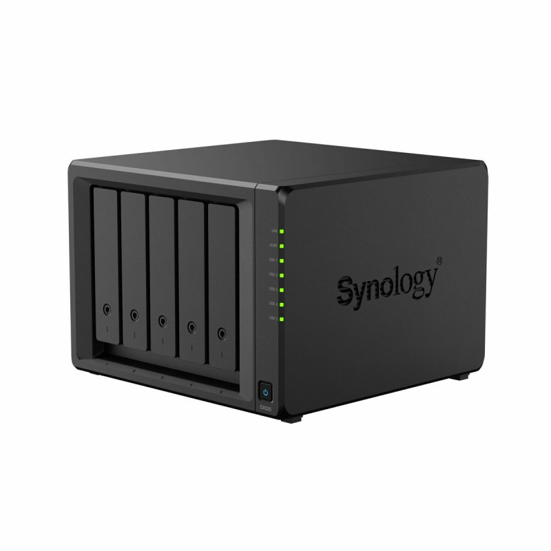 The Synology DX525 is an expansion unit designed to complement NAS network storage systems with a focus on flexibility and scalability. This device targets users and professionals who need to increase their storage capacity without compromising performance, supporting 3.5" SATA HDD hard drives and 2.5" SATA SSD solid-state drives, both hot-swappable, facilitating management and maintenance without operational interruptions. It features a total of 5 drive bays, allowing significant physical storage expansion. Connectivity is mainly via a USB Type-C expansion port, designed to integrate directly with compatible NAS servers, such as the DS925+ model, and leverage the RAID management offered by Synology DiskStation Manager (DSM), ensuring security and optimization in volume and disk array management. Regarding its design, the DX525 has a compact desktop metal chassis in black, measuring 166 x 230 x 223 mm and weighing approximately 2.46 kg, making it easy to place in professional or home environments without taking up excessive space. Its cooling system includes two 92 mm x 92 mm fans that maintain a low noise level of only 20.4 dB(A), ensuring quiet and stable operation. In terms of power, the unit operates with an input voltage of 100-240 V AC at a frequency of 50-60 Hz and an efficient consumption of 35.37 W during access and 7 W in hibernation mode, contributing to lower electricity costs and extending disk lifespan. Its certifications include international standards such as FCC, CE, BSMI, UKCA, among others, guaranteeing regulatory compliance and reliability. The package includes all necessary components for immediate connection and setup, such as the USB Type-C expansion cable, power cable and adapter, plus additional accessories. In summary, the Synology DX525 is a robust and flexible solution to expand network storage capacity, offering advanced compatibility, energy efficiency, and a design that facilitates integration into professional data management environments.