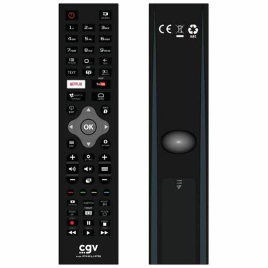 The CGV universal remote control is a practical and functional solution designed to replace or complement original Philips TV remotes, offering immediate compatibility without prior programming. With a compact design and a light weight of 115 grams, this remote stands out for its black finish, ensuring a discreet and elegant look suitable for any home environment. Its standard format and easy handling simplify basic remote control of essential TV functions, making it an essential accessory for users needing a reliable and easy-to-use replacement. It also features instant usability after replacement, with no technical complications, saving time and eliminating complex setup. This CGV remote meets the needs of those seeking a spare device that maintains the original Philips brand functionality and usability, guaranteeing intuitive and fast operation. Its balanced construction and materials provide a sturdy feel without being heavy, supporting comfortable use over extended periods. In short, the CGV universal remote control is a basic and efficient accessory to maintain full control over Philips TVs with a practical, ready-to-use product.