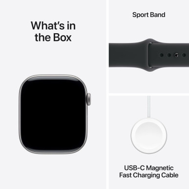 The Apple Watch Series 11 smartwatch is designed as an advanced smart watch for iPhone (iOS) users, combining activity tracking, health monitoring and connectivity in a compact, lightweight format. It features a 1.96" color OLED display with touchscreen and rounded corners, in a rectangular shape, offering clear viewing of notifications, sports metrics and apps even outdoors thanks to the ambient light sensor. The aluminium case between 30 and 46 mm, together with the rubber strap in sizes M and M/L, provides a comfortable, durable fit for daily and sports use, available in black and grey. Its design targets exercise with multisport functions and water resistance up to 50 m, suitable for pool or open‑water swimming. In terms of sensors, it includes a heart rate monitor, sleep monitor, accelerometer, gyroscope, altimeter and blood oxygen level sensor, allowing continuous recording of distance, effort and sleep quality. Its connectivity includes Bluetooth 5.3 with Bluetooth Low Energy, Wi‑Fi 4 (802.11n), built‑in GPS compatible with Glonass, BeiDou and Galileo, plus NFC for payments and other contactless uses, and mobile network connection options depending on version. Performance is ensured by a Dual Core processor (2 cores) that runs apps and sensors smoothly, supported by 64 GB of storage and internal memory (64 MB as indicated) suitable for the system and user data. It has a built‑in microphone and integrated speakers for calls, audio notifications and Siri use directly from the wrist, with support for mobile network connection on compatible models. The lithium‑ion battery offers power for a full typical day and charges via magnetic charging with an EU plug, making night or desktop charging easy. With a light weight (around 38 g for the watch) and approximate dimensions of 4.6 x 3.9 x 1 cm, it is comfortable to wear all day, and its removable strap lets you change style as needed. The Apple Watch Series 11 is a complete smart watch for users who need detailed control of activity, health and notifications within the Apple ecosystem.