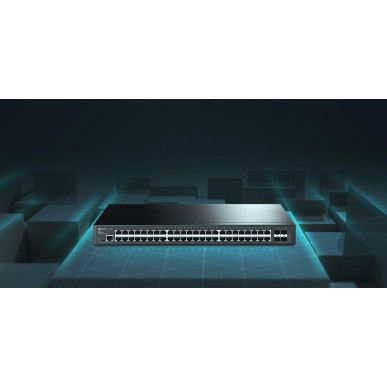 Convenient Gigabit Switch for a Complete Omada Network JetStream 48-Port Gigabit L2 Managed Switch with 4 SFP Reliable Gigabit Connections 48× Gigabit RJ45 Ports and 4× Gigabit SFP Ports Centralized Cloud Management SDN Solutions Integration for a Highly Efficient Network Advanced L2+ Features L2/L3/L4 QoS, ACL, Static Routing and More Abundant Secure Strategies LAN Area Investment Protection Software Defined Networking (SDN) with Cloud Access Omada’s Software Defined Networking (SDN) platform integrates network devices, including access points, switches and gateways, providing 100% centralized cloud management. Omada creates a highly scalable network—all controlled from a single interface. Seamless wireless and wired connections are provided, ideal for use in hospitality, education, retail, offices, and more. Advanced L3 Features An abundance of L2+ and L3 features are supported to help build a highly scalable and robust network, providing a reliable and efficient solution for enterprises, campuses and ISPs. Secure Networking Security features include IP-MAC-Port-VID Binding, Port Security, Storm Control and DHCP Snooping to defend against a range of network threats. An integrated list of common DoS attacks is available, making it easier than ever to prevent them. In addition, the Access Control Lists (ACL, L2 to L4) feature restricts access to sensitive network resources by denying packets based on source and destination MAC address, IP address, TCP/UDP ports or VLAN ID. Users’ network access can be controlled via 802.1X authentication, which works with a RADIUS/Tacacs+ server to grant access only when valid user credentials are provided. Enterprise Level Features A complete lineup of L2+ features are supported, including 802.1Q VLAN, Port Mirroring, STP/RSTP/MSTP, Link Aggregation Control Protocol, and 802.3x Flow Control. Advanced IGMP Snooping ensures the switch intelligently forwards multicast streams to only the appropriate subscribers, cutting out unnecessary traffic, while IGMP throttling & filtering restrict each subscriber on a port level to prevent unauthorized multicast access. Static Routing is a simple way of segmenting the network and internally routs traffic through the switch for improved efficiency. Advanced QoS Voice and video traffic can be prioritized based on IP address, MAC address, TCP port number, UDP port number, and more. With QoS (Quality of Service), voice and video services remain smooth, even when bandwidth is in short supply. ISP Features** QinQ, L2PT, PPPoE ID Insertion, and IGMP authentication features are provided, developed with service providers in mind. Device Link Detection Protocol (DLDP) offers easy monitoring and troubleshooting of Ethernet links. IPv6 Support IPv6 functions such as Dual IPv4/IPv6 Stack, MLD Snooping, IPv6 ACL, DHCPv6 Snooping, IPv6 Interface, Path Maximum Transmission Unit (PMTU) Discovery and IPv6 Neighbor Discover guarantee your network is ready for the Next Generation Network (NGN) without upgrading your hardware.