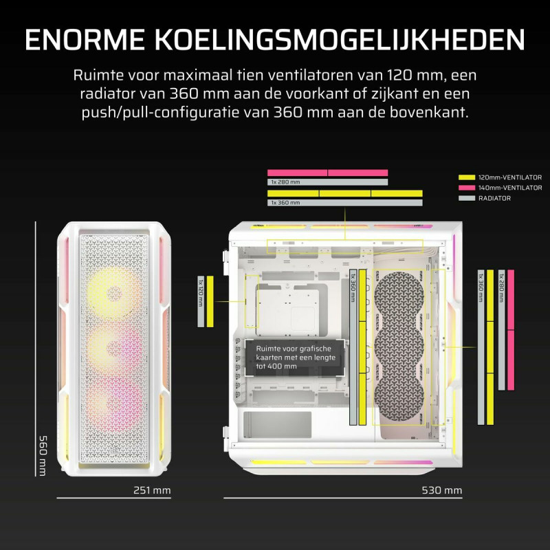 La Case Semitorre ATX Corsair 5000T LX RGB è una soluzione avanzata per assemblare e potenziare PC gaming e computer che cercano prestazioni ed estetica combinate. Progettata in un elegante colore bianco, questa case con fattore di forma Midi-Tower è realizzata in acciaio resistente e dotata di un pannello laterale in vetro temperato che consente di mostrare l’interno e l’illuminazione RGB, offrendo un tocco visivo sofisticato. Equipaggiata con tre ventole LX120 RGB incluse, garantisce un raffreddamento attivo ottimale insieme a un’illuminazione Aurora RGB personalizzabile, ideale per sistemi che richiedono un flusso d’aria efficiente e un design elegante. Inoltre, dispone di molteplici porte USB A 3.2 Gen 1 (3.1 Gen 1) x 4, facilitando il collegamento rapido di periferiche e dispositivi esterni. Il pulsante di accensione è progettato per offrire un’esperienza d’uso comoda e accessibile, mantenendo un design pensato per gamer e utenti PC avanzati. Questa case combina la funzionalità indispensabile per assemblare un sistema robusto e scalabile con la tecnologia di illuminazione ambientale di Corsair, ottimizzando sia le prestazioni termiche sia l’aspetto estetico del computer. Complessivamente, la Corsair 5000T LX RGB è un’opzione versatile e ben bilanciata nella categoria delle case semitorre gaming, perfetta per chi cerca una struttura solida, raffreddamento efficiente e una presentazione visiva di rilievo nella configurazione del PC.