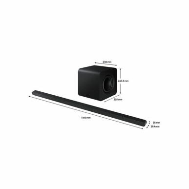 La barra de sonido Samsung HW-S810D è un dispositivo progettato per migliorare l’esperienza audio domestica, con un sistema a 3.1.2 canali che integra la tecnologia Dolby Atmos, offrendo un suono tridimensionale avvolgente che aggiunge profondità e realismo all’audio di film, musica e contenuti multimediali. Questo modello include un subwoofer wireless che facilita l’installazione e garantisce bassi potenti e definiti senza cavi aggiuntivi. Tra le opzioni di connettività spiccano Bluetooth e Wi-Fi, permettendo di riprodurre facilmente contenuti da smartphone, tablet o altri dispositivi compatibili, oltre a favorire l’integrazione con reti domestiche e sistemi di controllo intelligente. La struttura del prodotto consente il montaggio a parete, ottimizzando spazio ed estetica del soggiorno o della sala multimediale. Per quanto riguarda le connessioni fisiche, dispone di HDMI, che assicura una trasmissione audio di alta qualità e compatibilità con TV o altri dispositivi multimediali moderni. Inoltre, include un telecomando che facilita il controllo remoto di tutte le funzioni, offrendo comodità e facilità d’uso. Con un equilibrio tra tecnologia avanzata, versatilità nelle connessioni e design pensato per l’integrazione negli ambienti domestici, la Samsung HW-S810D si presenta come una soluzione solida per chi cerca una barra audio con prestazioni sonore superiori, connettività aggiornata e un’installazione pratica e ordinata.